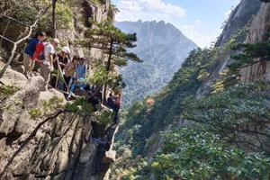 绩溪家朋乡山云岭位于荆州公路的途中,景区内山峦起伏、云海翻腾、群峰竞秀、悬崖峭壁林立、奇松怪石密布、景色旖旎迷人。因其奇石怪松与黄山相似,故又被人称作为“小黄山”。