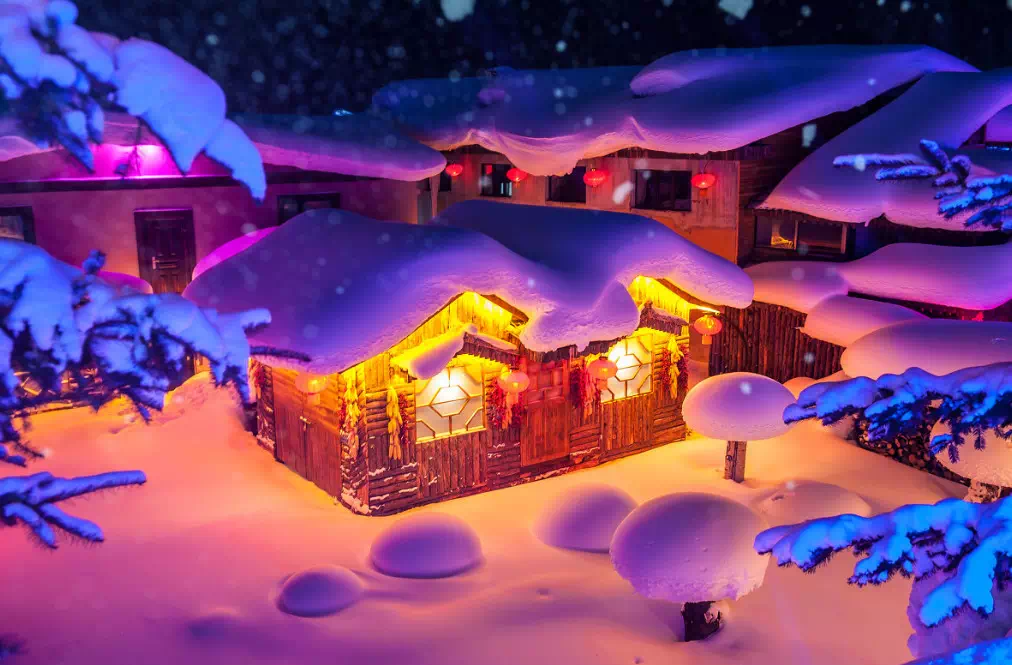 14:00左右抵达【雪乡】,俗话说:“中国雪景在龙江,龙江盛景在雪乡”大家可以前往【雪韵大街】走一走,打卡【雪乡邮局】,为自己或者亲朋好友寄一张带着雪乡标志的明信片,在【雪乡博物馆】体验二、三十年前雪乡质朴的生活。也可以到【棒槌山】观景栈道欣赏层层叠叠的积雪。第一次看雪景的南方小伙伴,去找个空旷的雪地尽情打滚吧,在出门前记得准备一瓶热水,在领队的专业指导下,试试火遍朋友圈的泼水成冰这样才能塑造抖音潮流打卡照。