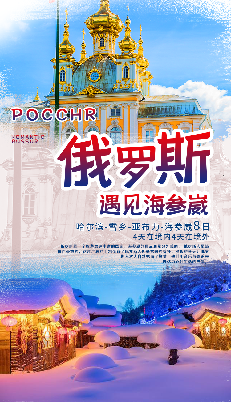 4、全程门票费:雪乡门票、大雪谷穿越门票、亚布力景区门票、亚布力滑雪费(包含雪具费用)。(俄罗斯行程内所含景点门票,自愿放弃景点内容的恕不退款)