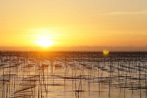 美妙的光影变化、独特的优美线条,金色沙滩、满海竿影,海上的日升日落……被摄影界称为中国最美丽的滩涂。