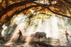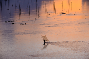 感谢上天酬勤,在回报辛勤的讨海渔民有丰盛捕获的同时,不忘投射侧光斜影,令滑板走过留下的痕迹,变成洗练的线条,劳作的渔民和渔船变成立体的剪影, 让人无限慨叹,劳动真的很美。