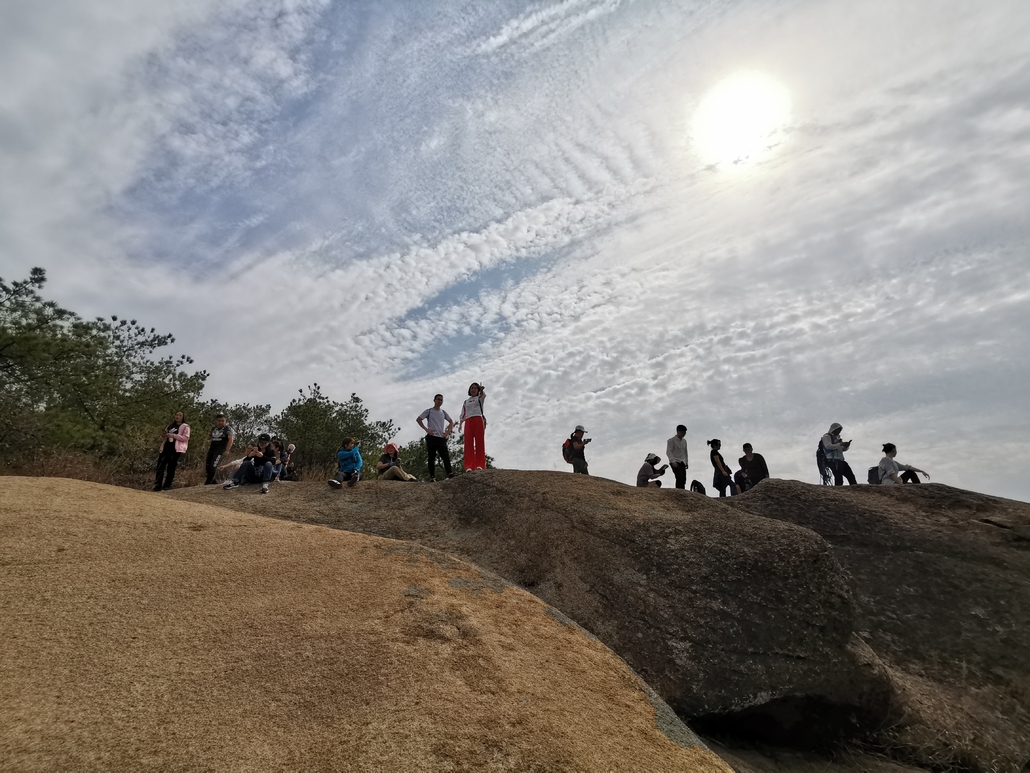 爬到山顶,怪石嶙峋,如牛的脊梁,如秋日里的草甸,如龙王尖近似的古寨,经过长时间的风蚀水流形成诸多象形石景观。