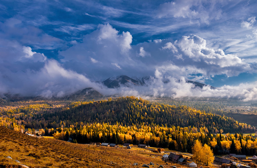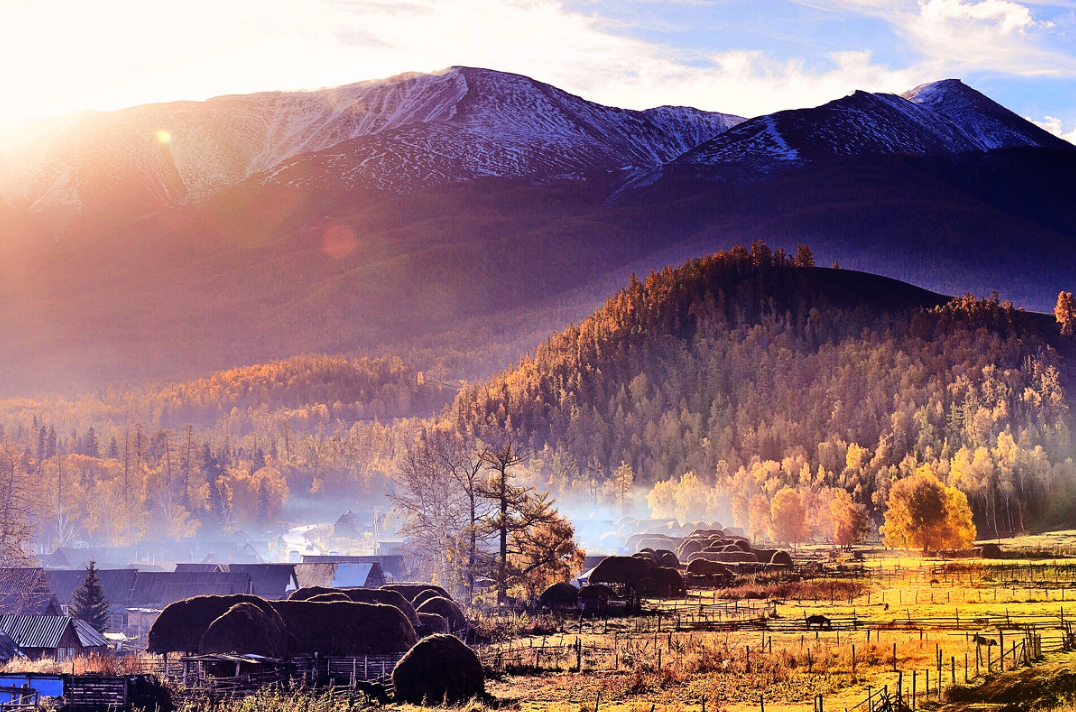 禾木村即是禾木景区位于新疆布尔津县喀纳斯是图瓦人的集中生活居住地,是仅存的3个图瓦人村落(禾木村、喀纳斯村和白哈巴村)中最远和最大的村庄,这里的房子全是原木搭成的,充满了原始的味道。禾木村是被白桦树,雪山和河流包围的美丽村庄,自然风光原始,人迹罕至,被誉为神的自留地。