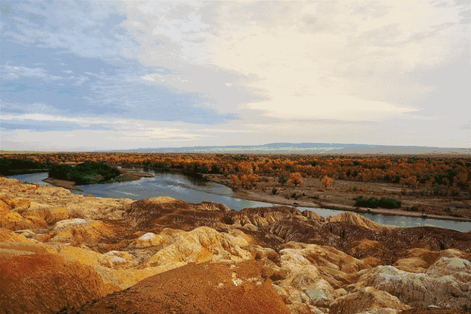 五彩滩位于阿勒泰布尔津县境内,地处我国唯一注入北冰洋的额尔齐斯河北岸的一、二级阶地上,是新疆最美的雅丹地貌,由于它色彩绚烂,形状缤纷而得名。经过千万年风蚀雨剥以及河水的冲刷,在几乎寸草不生的河滩上出现了红、绿、紫、黄、棕等鲜艳的色彩。