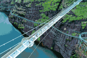 丹霞赤壁、石窟瀑布、玻璃鹊桥、悬崖飞索