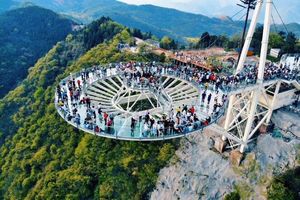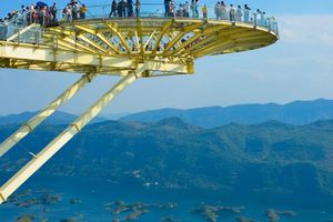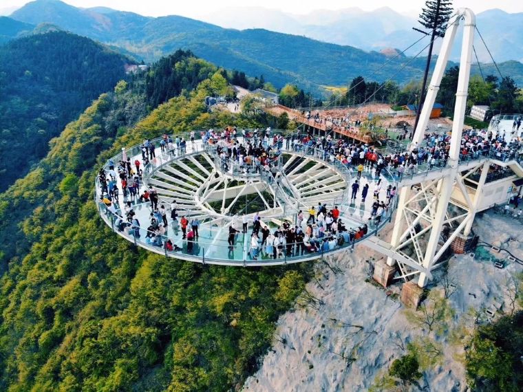 天空之镜玻璃观景平台建于仙岛湖北岸最高峰520米的千里山山顶,采用全钢结构+三层玻璃+两层SGP,玻璃总面积约为1500平方米,配全玻璃咖啡屋。天空之镜无论是在玻璃面积、悬挑跨度、技术难度等多项指标上挑战世界一流水平,多个世界、国内之最,堪称现代工程与大自然奇景的完美结合。