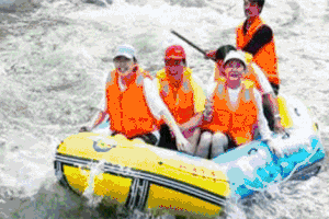2、冲滩时两手紧紧抓住漂流艇两边的安全把手,切勿用手去抹脸上的浪花,以免被抛出艇外;