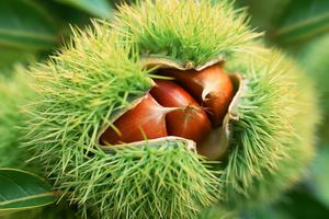 罗田位于大别山南麓,大别山主峰雄居境内,这里森林茂密,自然环境优美,是首批命名的全国板栗之乡。 板栗以其果大(特级板栗每公斤40粒以内),质优而闻名于世,罗田所产板栗颜色鲜艳,营养丰富,极耐贮藏。并且上市时间长,一般从8月底至于11 月中旬均有板栗上市,同时还有优质苗木出售。