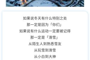 逃离了都市的快节奏和雾霾,在滑雪时候全世界只有你,畅滑各种雪道,不仅享受飞翔般快感,更是一种不断克服自己征服雪道的过程。
