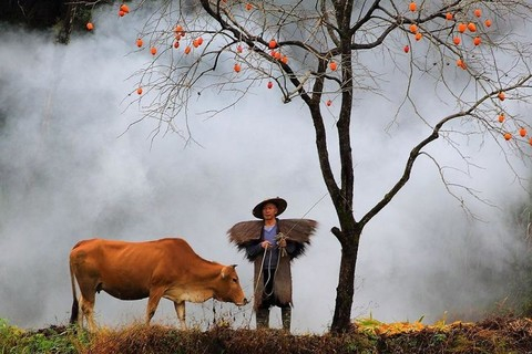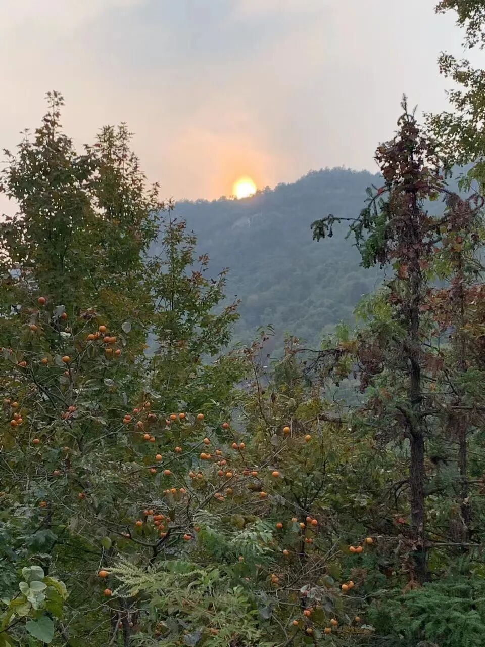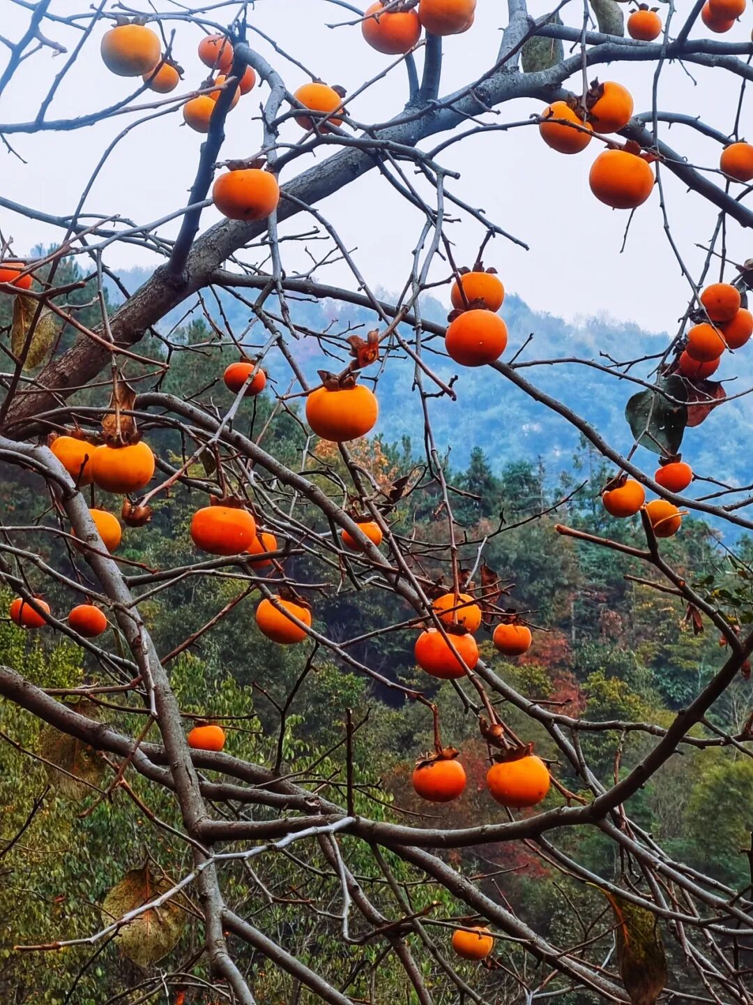 14:00进入錾子石村拍摄,深秋季节,金色柿子挂枝头,似小小的灯笼般;远处的山峦,山间的柿子树,与乡村建筑相映,美丽乡村;走在田埂里,空气是那么清新;品尝脆甜的柿子,甜蜜于心中。沿着“漫步道”游玩,台阶往上走,到达山顶部,有多家民宿,白墙青瓦,与柿子相结合,徽派感觉,可转一圈不走回头路。