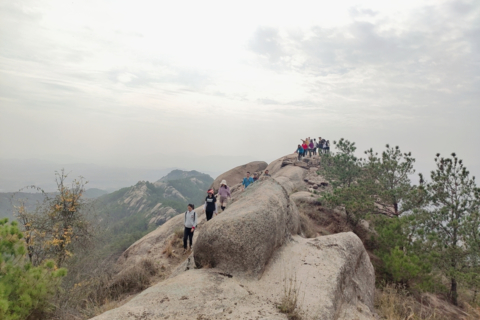 四周群山环抱,松林叠嶂中更有奇石层出,实为登高望远绝佳之地;山体上裸露巨大奇石,造型各异;山上土层瘠薄,松树挺拔而不成荫;山坳间云雾缭绕,好似水墨一般的画廊。