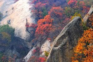 11:00 到达红叶山下,徒步登山赏景,山不高但石奇,每到深秋初冬,漫山红遍、层林尽染,煞是好看。满山红叶在碧绿的松柏映衬下,更显得格外鲜艳夺目。远近高低、千峰万壑之间那一片片、一簇簇、一堆堆的红叶在秋风中飞舞,层林尽染,尽情地向人们展现红叶秀丽飘逸、撩人情思的独特风韵!途中灵活路餐。