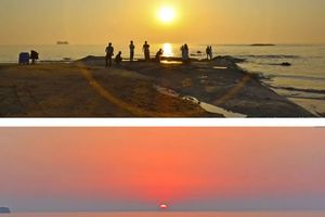 早起步行五分钟到椰子树金沙滩看日出,日照这里被称“日出先照”而得名,这里的日出很美,从海平面最东方升起,海滩上有座公园散步很惬意。
