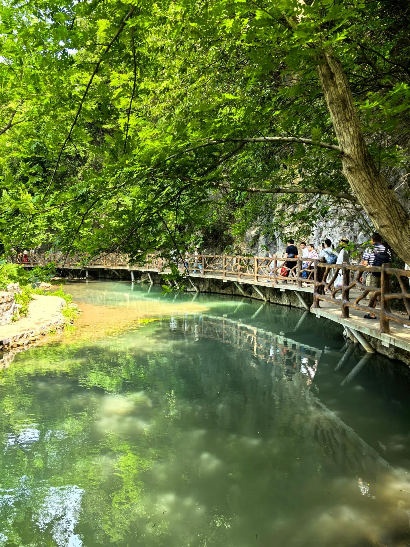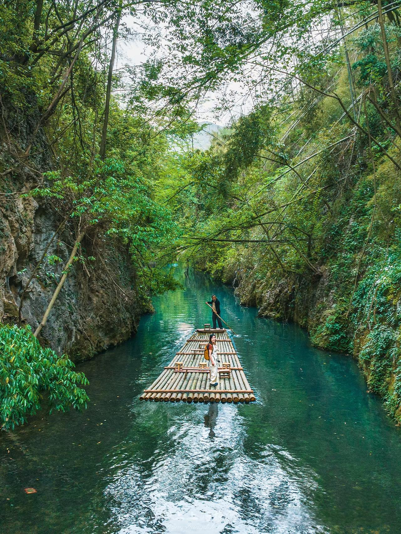 峡谷内溪水清澈,飞瀑,古桥,溶洞,河滩,美景不断。中午找一块宽敞地自由午餐,下午摄影打卡,走简易栈道,穿行峡谷,摄影玩水,全程约3公里左右,排队坐竹筏出来(10元/人)