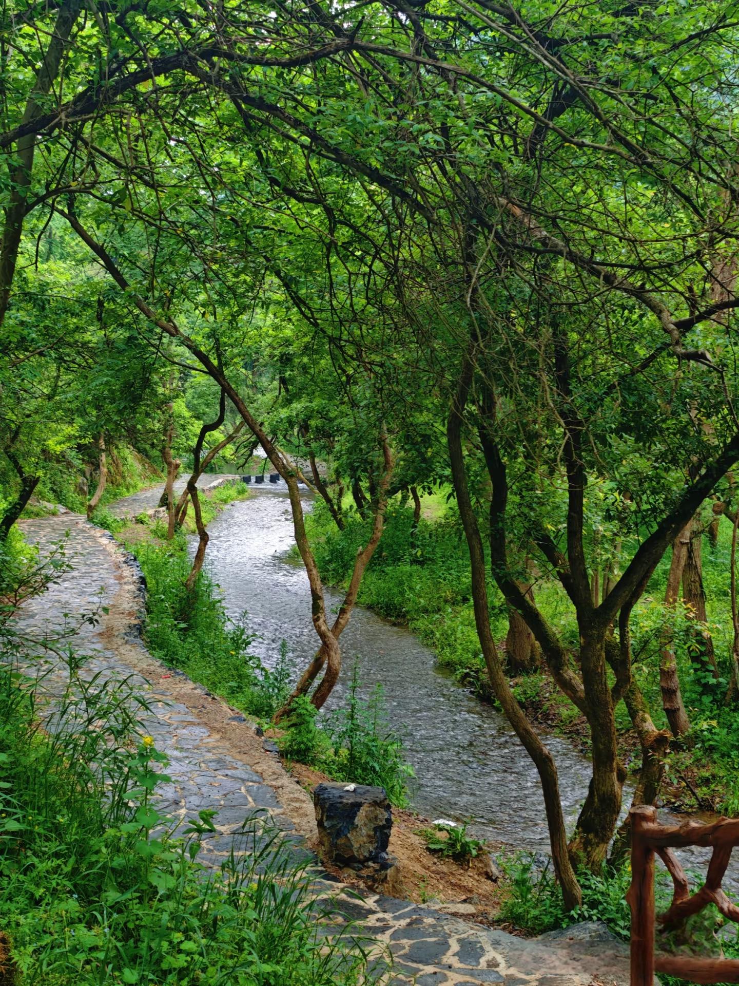 溪水飞瀑,古桥古道,树木交错,小桥流水等等,一路都是绝美的原始美景。