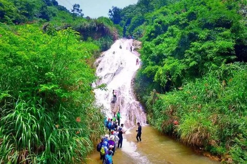 这里的深潭、瀑布一个接一个,溯溪而上,人走在瀑布上,白花花一片,轰隆隆一片,那种壮美尽收眼底,让人惊叹大自然的鬼斧神工