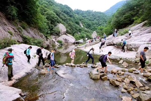 位于湖北河南交界,素有小三峡之称。水清、林秀、潭奇、境幽、路险是这个大山深处静如处子九女潭的五大特色。九女潭景区面积近八平方公里,有九个潭、三座大山、十多处小景点。中心景点是九女潭,分别为九女潭、大女潭、青潭、秀潭、玲潭、珑潭、月潭、静潭和同心潭,每个潭面积200—400平方不等,水深也在4——8米之间。九个潭自上而下依次相联,每两潭间又有一个小瀑布,人称小瀑布为九联瀑。九女潭景区的水、山、石、花无论从那个角度看,都既是精妙的巧夺天工,又是绝伦的和谐相处,水、山、树、石、遗迹于一体。
