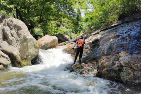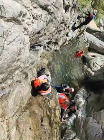 10:30山脚下徒步起点,下车整理装备,轻装自带两瓶水和一顿中饭进入峡谷溯溪开始;