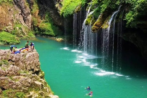 08:30抵达马拉河景区停车场、领队分发门票领取人体漂流装备(安全帽、安全衣)、由景区安全员带入景区、亲身体验激情无险、人体漂流、跳潭乐趣。