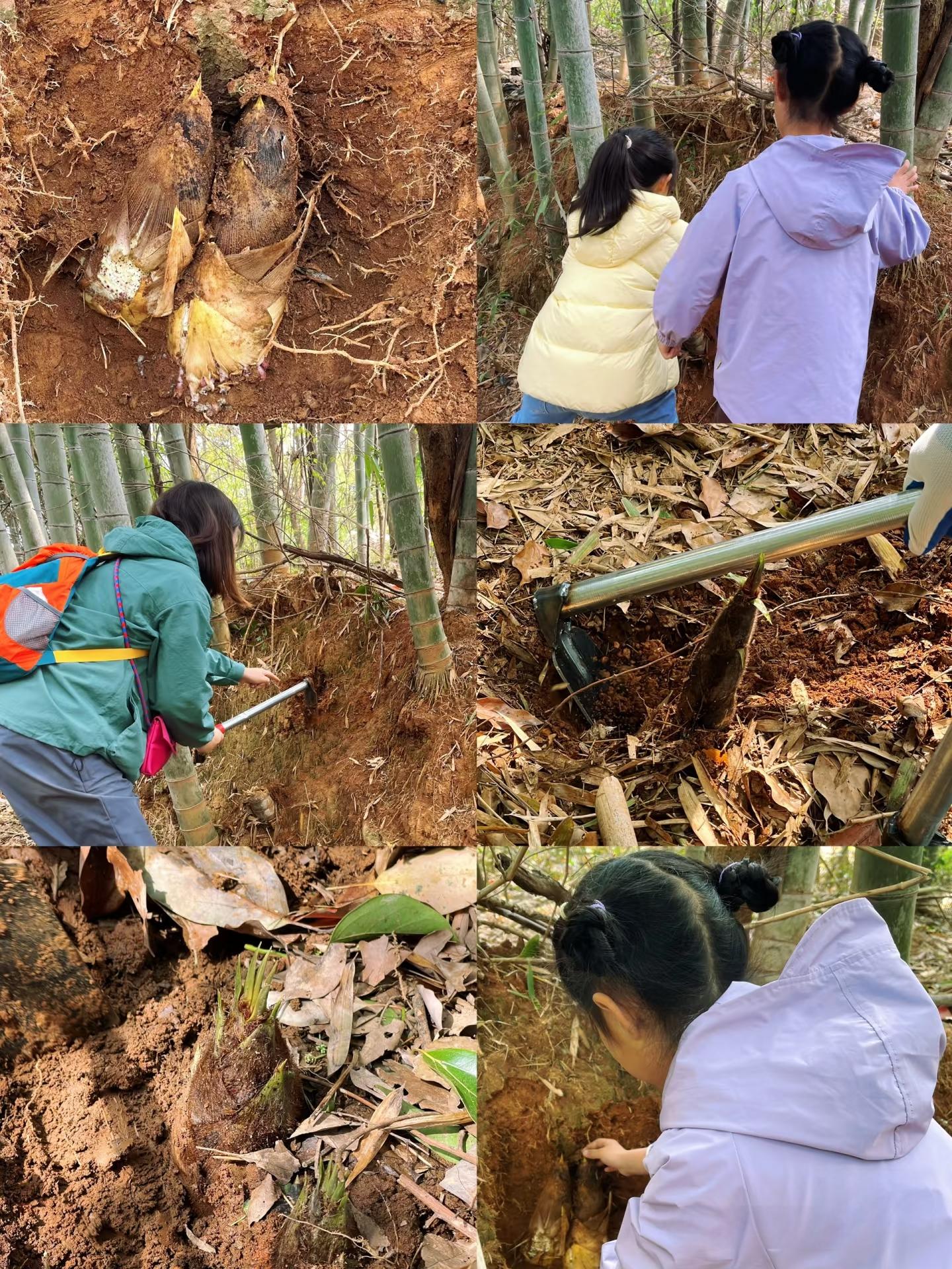 10:50-12:00 下车到达竹林,分发工具,上山挖竹笋。