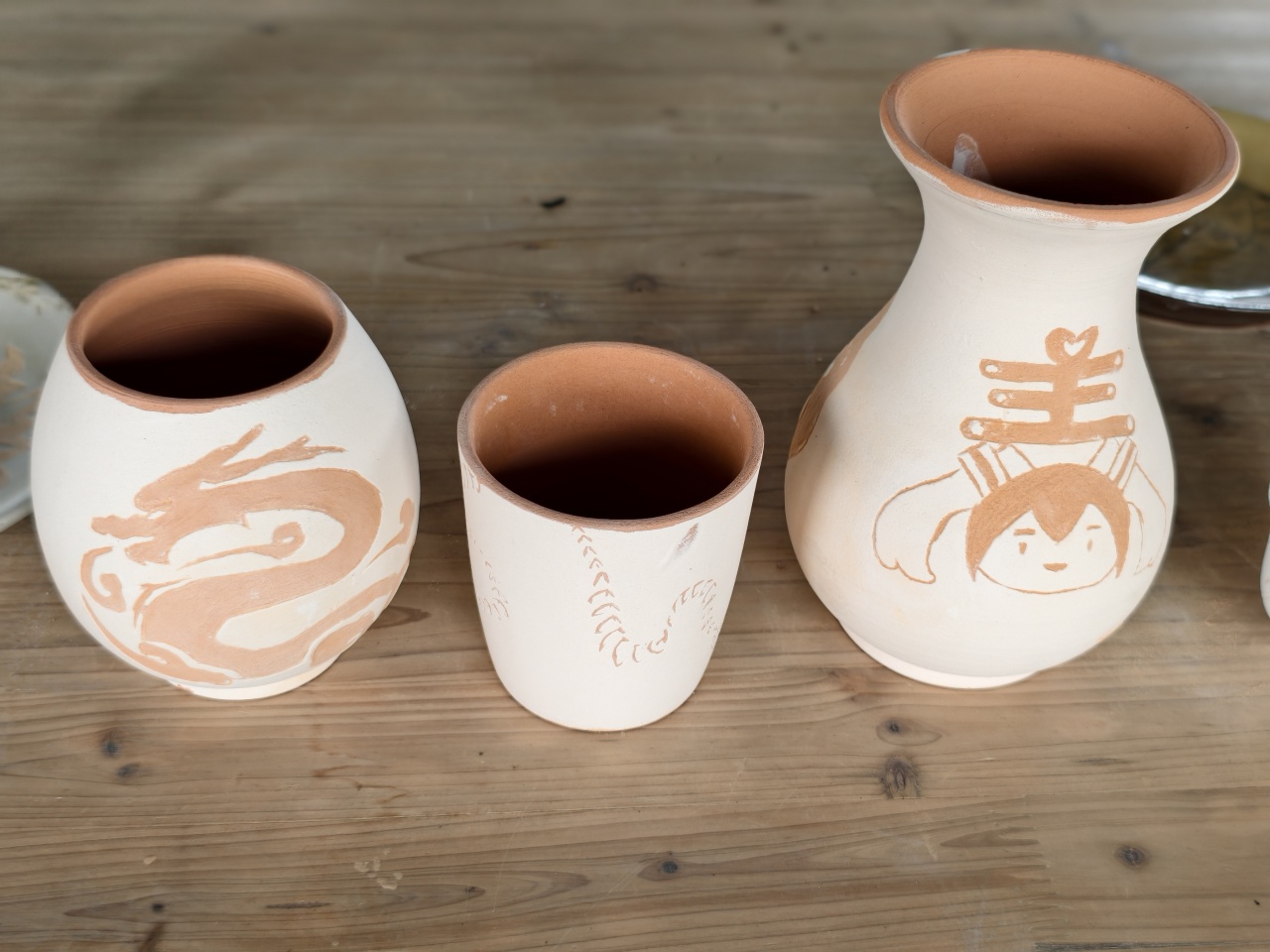 制作陶艺参考年龄:3-4年级(泥塑茶杯);5-6年级(陶艺鼎);7年级(手捏茶壶);8年级(陶艺服饰杯)