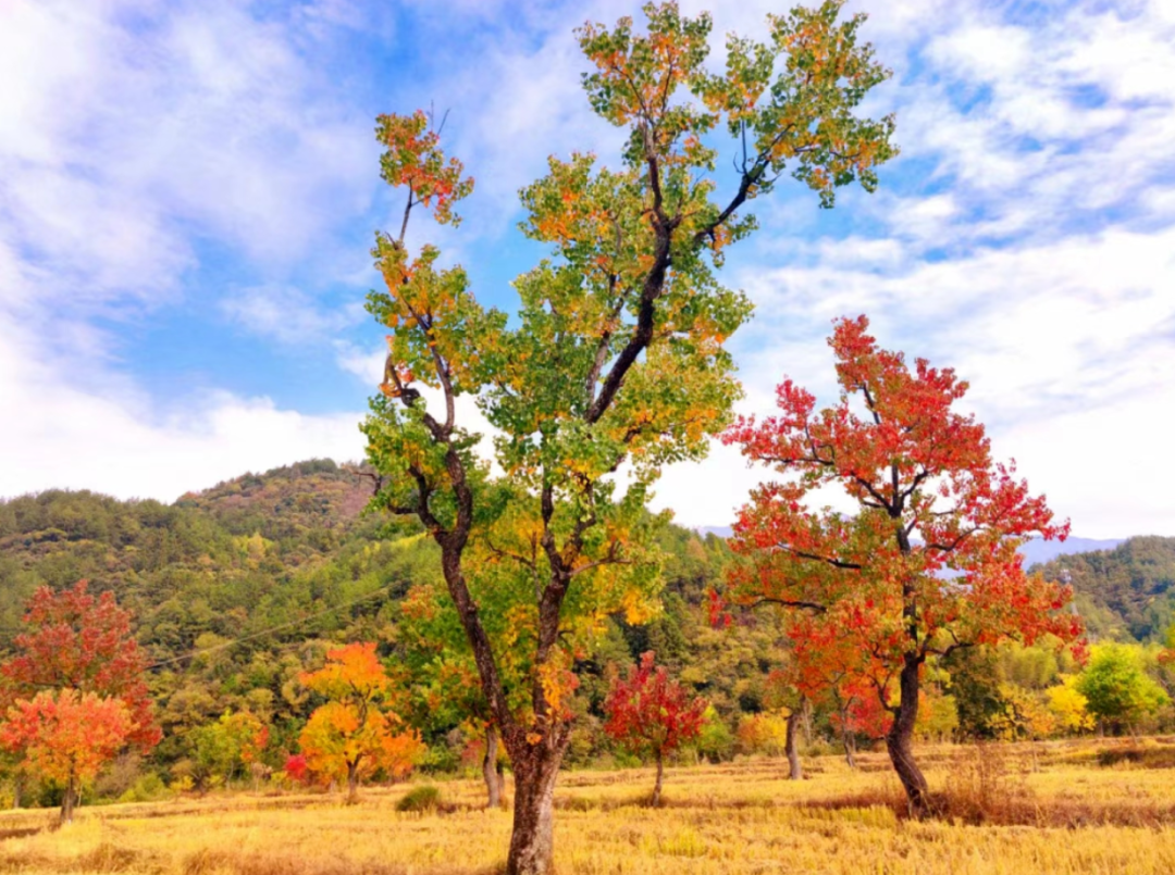尤其在圣人堂、徐凤冲、麒麟畈等地的大畈上,满山片野的红叶风景令人心旷神怡;