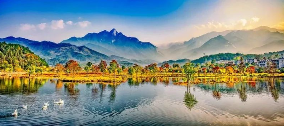 12:00前往水上公路,深秋时节,九资河漫山遍野的乌桕树叶绚烂如火,“水上红叶”美景更是让人震撼。由于早晚温差大,清晨薄雾缭绕,雾气升腾的水面,渔人划舟撒网,收获着一份遗世独立的恬静,真是让人如痴如醉、流连忘返。