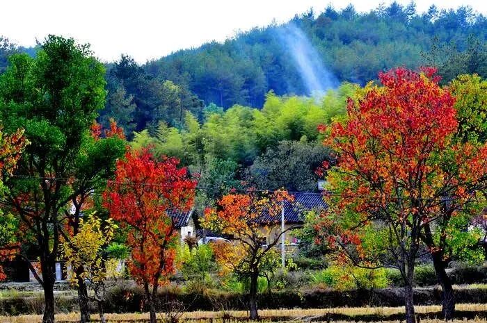 罗田红叶为乌桕树叶,遍布湖北省黄冈市罗田县全境,其中尤以九资河镇红叶最为著名。