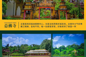 早餐后我们将一同前往在州府景洪去【曼听公园】,走进1300多年的傣王御花园,感受傣王的王室生活;去【总佛寺】参拜祈福,感受一下“泰国异域风情”,在这个有着一千多年历史的“版纳地位最高佛寺”,为你的家人许下一个愿望吧。