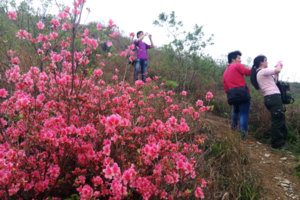 11:30 沿着山脊走,有古寨、古城墙、烽火台、杜鹃花、紫藤花、奇山异石、高山草甸。