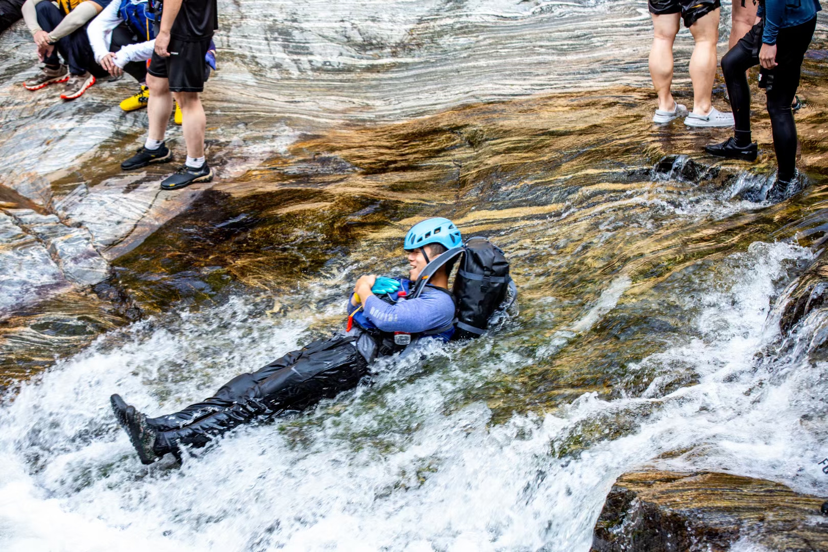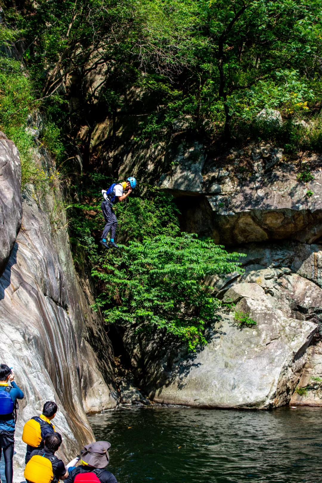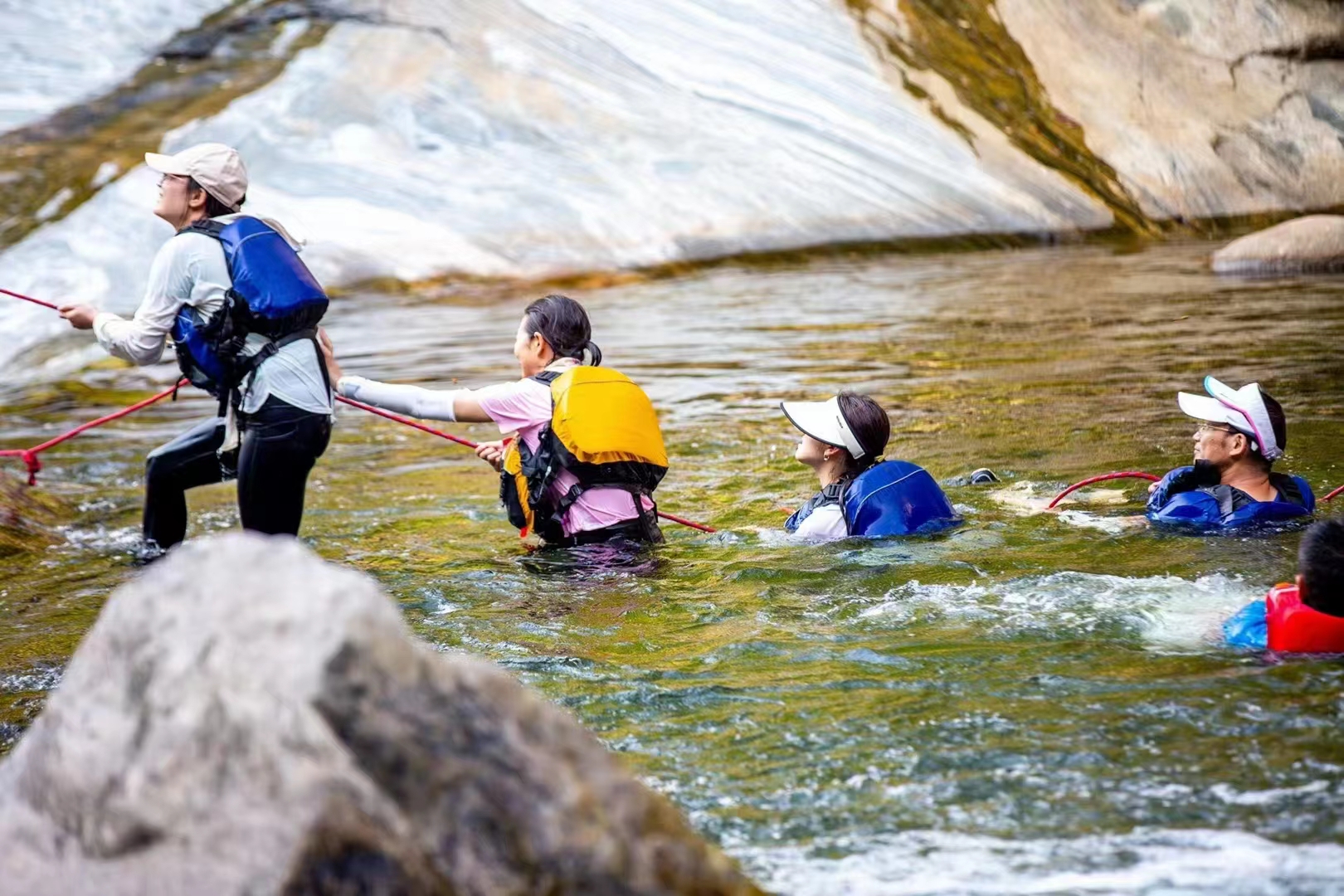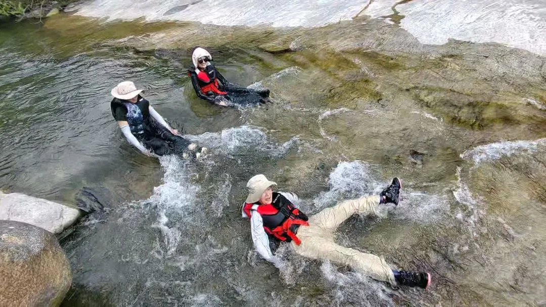 溯溪是一种很好的方式来度过炎热的夏天,因为水流可以带来清凉和刺激。它也是一种团队活动,可以增进成员之间的信任和合作,同时也促进了户外运动和自然保护的意识。大城市快节奏的生活让人压抑,它也是一种特别好的放松方式。