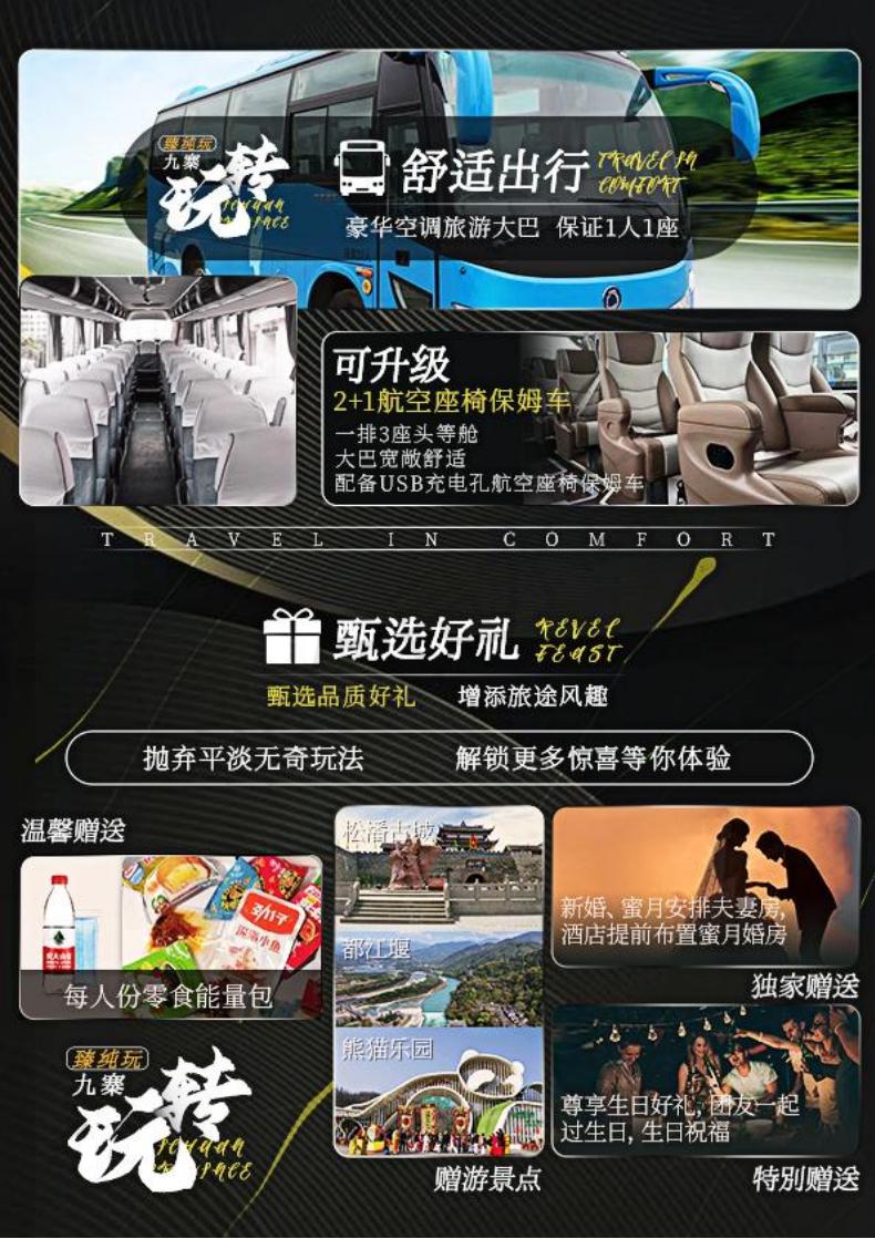 4、出行前请提前了解目的地天气地理状况,并请备好常用保暖,降暑,防晒,防雨用品及常备药品。请注意行程中上下车,行车中,酒店内,景区内,用餐点人身及财产安全;九寨黄龙均包含陡坡密林、悬崖蹊径、急流深洞等危险区域,请注意禁止标志,不可冒险前往;景区内禁止吸烟,请爱护公共环境卫生。