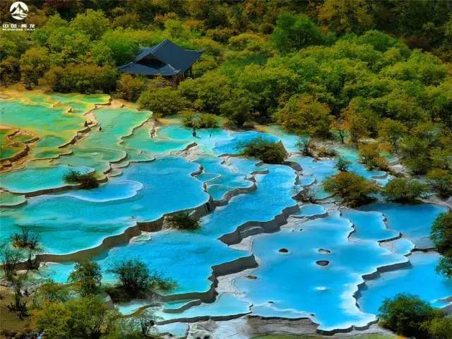 池底五颜六色,池中到处都是奇特的花草石块,活水源源不断流淌而过, 俨然好像大自然巧夺天工的盆景。因沟中有许多彩池,随着周围景色变化和阳光照射角度变化变幻出五彩的颜色,因而它为被誉为“人间瑶池”。黄龙风景区以其规模宏大、结构奇巧、色彩丰艳的地表钙华景观为主景,以罕见的岩溶地貌蜚声中外,堪称人间仙境。