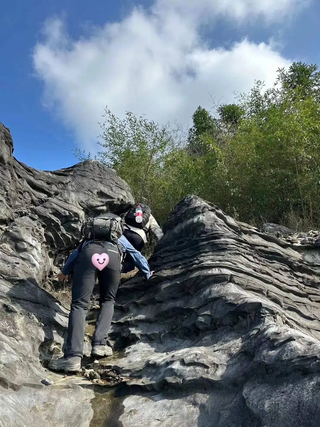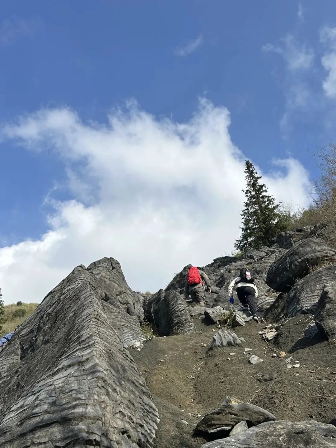 这条黄袍山登山路线不仅充满挑战和惊喜,更有独具特色的线路亮点!沿途有大片的火山岩,我们将在这些岩石上攀爬,相互扶持行进。这将是一次独一无二的体验,让你感受到身体和心灵的极致挑战。