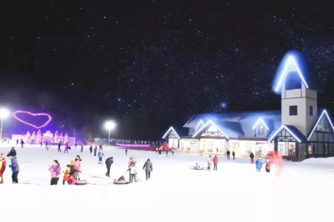 距离木鱼镇只有10公里的龙降坪星空国际滑雪场:神农架唯一开设夜场滑雪的星空滑雪场。