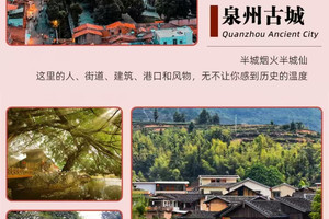 适时我们前往千年古刹【开元寺】,这有中国最高的两座石塔一东西塔、千年不老桑、飞天乐伎、泉州湾古船陈列馆、弘一法师纪念堂等都汇集在这座具有1300多年的古寺中穿过开元寺到达西街感受舌尖上的泉州,大家可自行游览【泉州古城】中国现存最古老的伊斯兰教寺清净寺、中国最大的关帝庙通淮关岳庙、始建于南唐的承天庙。感受“此地古称佛国,满街皆是圣人”的历史踪迹.