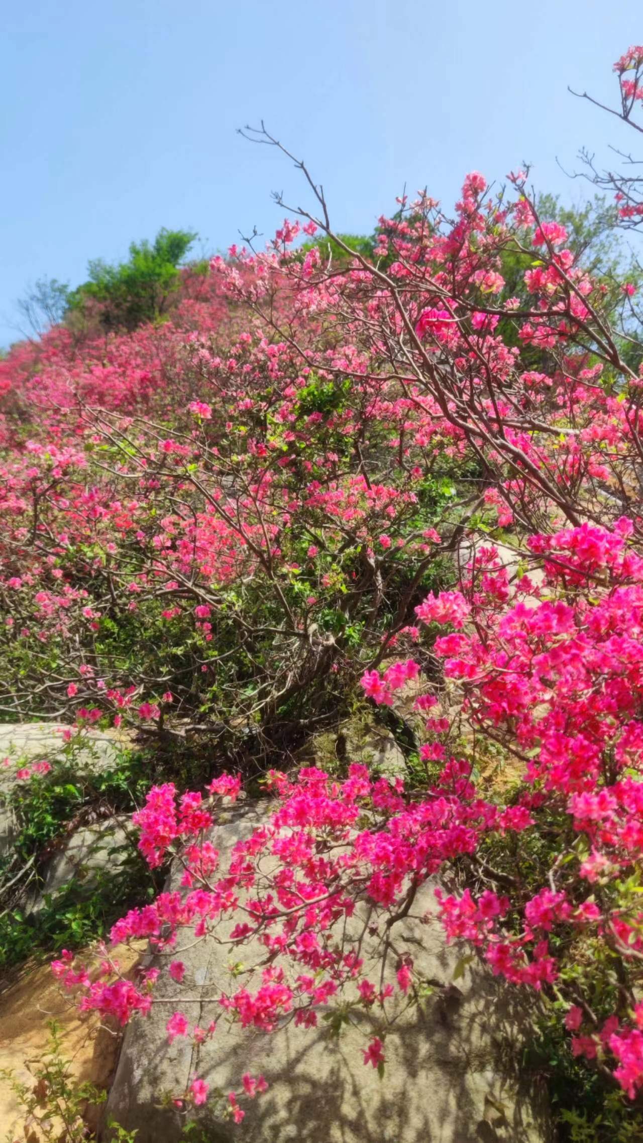每年四月山上的万亩杜鹃花和紫藤花绚丽绽放,让这里成了花的海洋,徒步穿行其中,心旷神怡,美不胜收!