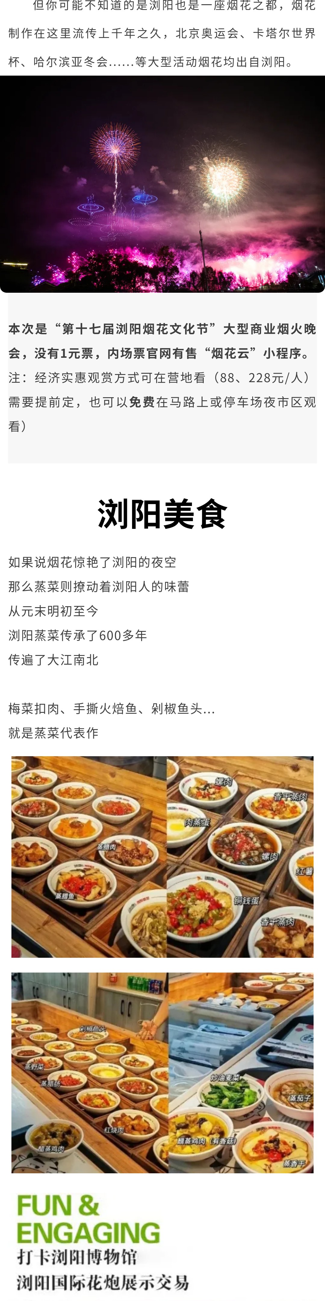 12:15-17:00 游览【浏阳博物馆】(需提前关注公众号预约当日门票),或前往【浏阳国际花炮展示交易中心】即可实现烟花自由;
