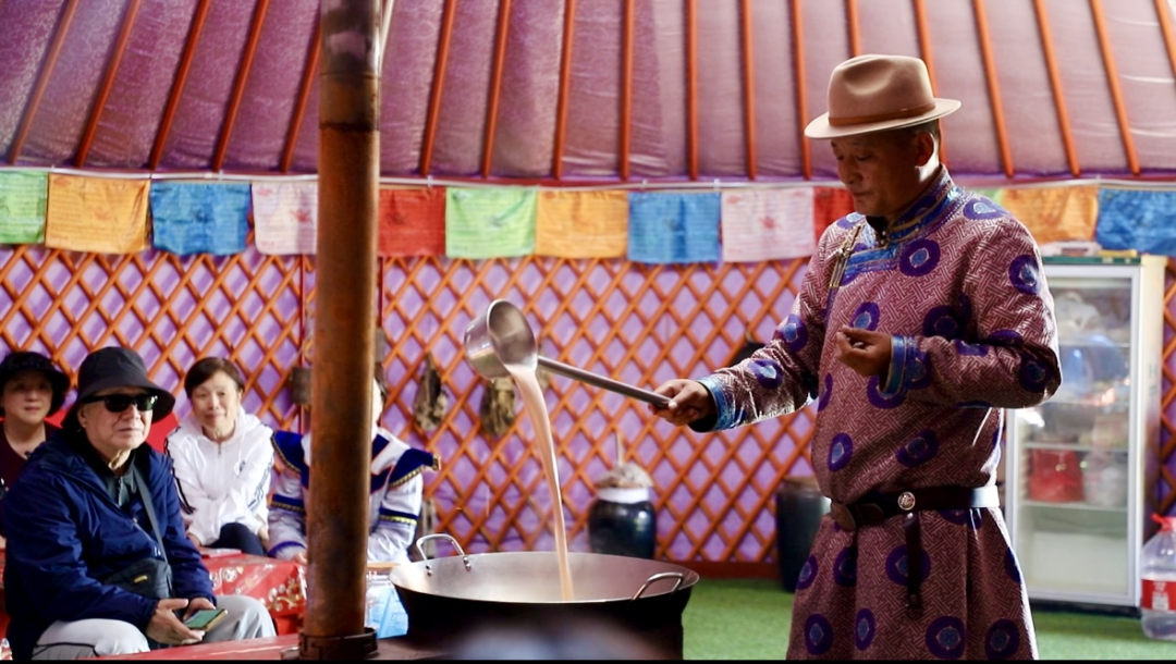 走近草原上的游牧民族,体验蒙古族的传统生活方式,熬制奶茶,品尝蒙氏咸奶茶。
