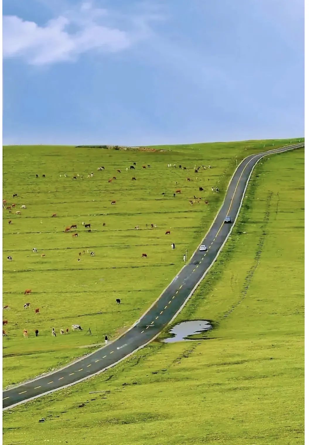 与天相接的,是那望不到尽头的绿海,草儿在微风中轻轻摇曳,每一次摆动都像是大地在温柔呼吸,一波又一波,绿意直沁心底。