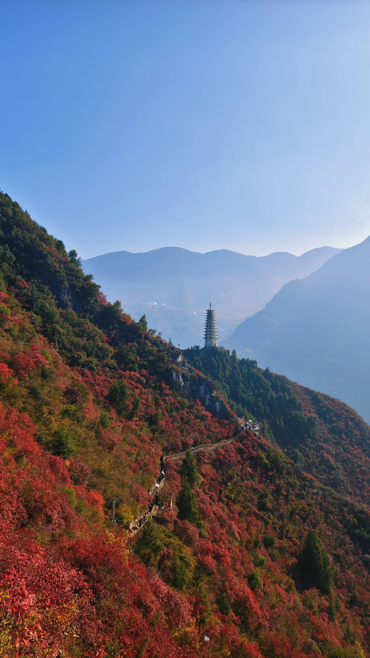 早餐后我们乘车前往巫山文峰景区,乘坐景交车+徒步三峡龙脊(免去了拔高1040米的台阶路),进入冬季,文峰山上漫山红遍,十分壮观。沿三峡龙脊古道徒步,全程徒步约5公里,耗时约3-4小时,强度和难度都不大,老少皆宜。可以边走边玩尽情打卡“三峡最美徒步线路”漫山红遍,中餐自带路餐饮水。