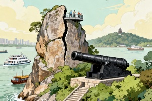 雄浑苍劲的字迹,镌刻在崖壁之上,诉说着千百年前古人对这片江山的盛赞与敬畏。每一道笔画都仿佛在时光中震颤,引领着游客穿越历史的长河,去领略往昔岁月里北固山的壮丽与豪情。