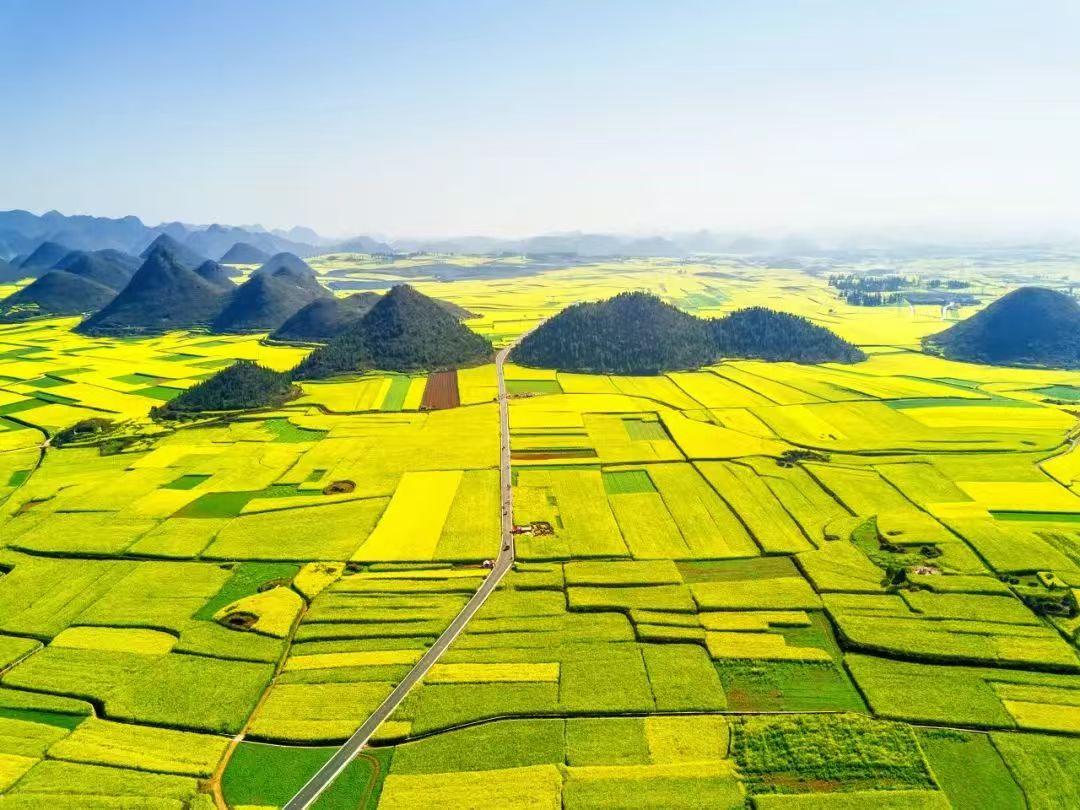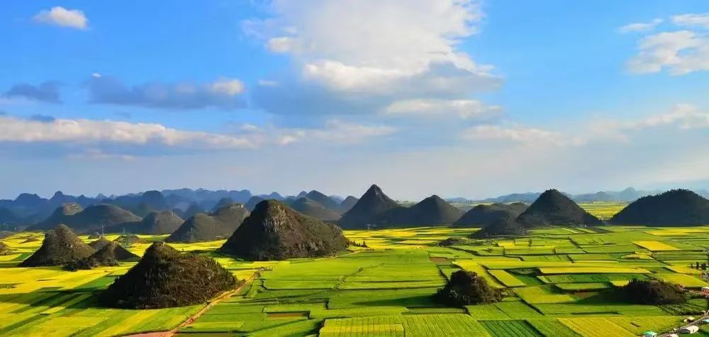 早餐后前往罗平【金鸡峰从】,此处地方比较灵活,大家可以分开游玩,金鸡峰可以在附近山头拍照,也可租电瓶车或自行车前往更深入的地方看花海。春天的罗平满眼都是金灿灿的黄,几十万亩油菜花满山遍野地开放,非常充裕的时间留给您尽情拍照,还为您准备了特色民族服装让您尽情地放飞自我凹造型!天气好可以拍摄到耶稣光射到云雾中若隐若现的油菜花以及金鸡峰群。