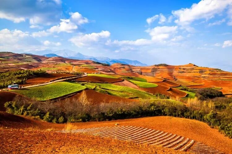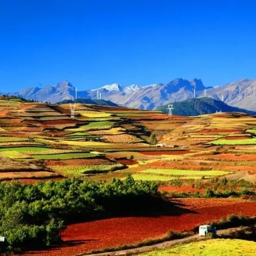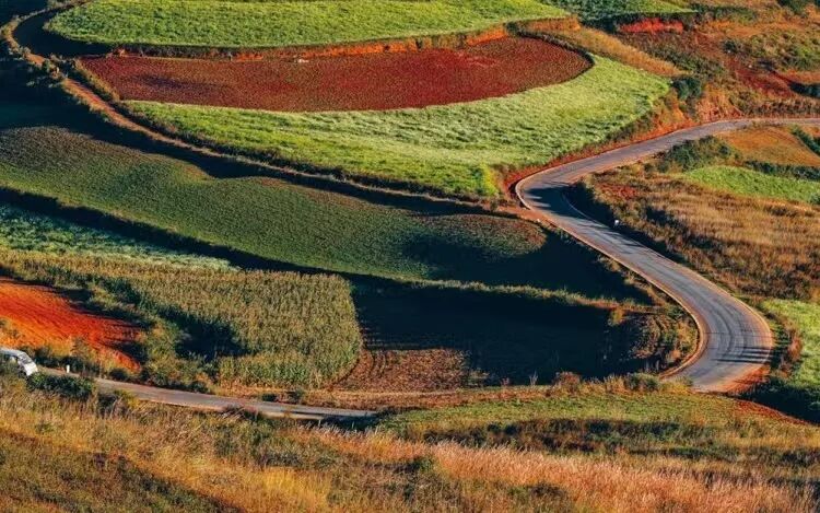 早餐后出发前往东川红土地,下午到达后进入东川红土地沿途浏览拍摄乐谱凹,老榕树,落霞沟,螺蛳湾,瓦房梁子;感叹大自然的神奇,有人形容这里是“大地的调色板”一点都不为过,一年中因为农作物的不同,色块的变化也不一样,一路走,一路拍,寻找自己喜欢的色块与构图,晚宿红土地,一起吃年夜饭。