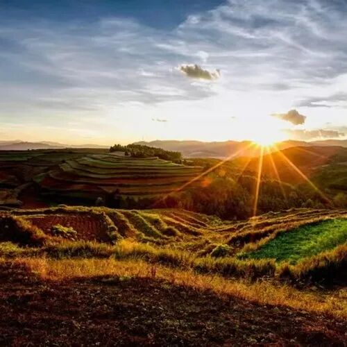 早餐后前往世界遗产地元阳梯田,元阳梯田是哈尼族人世世代代留下的杰作,是哈尼族人1300多年来生生不息地“雕刻”的山水田园风光画,梯田随山势地形变化,因地制宜,坡缓地大则开垦大田,坡陡地小则开垦小田,甚至沟边坎下石隙也开田,因而梯田大者有数亩,小者仅有簸箕大,往往一坡就有成千上万亩。前往阿者科蘑菇房,一路走走拍拍,期间会带大家前往只有摄影家才去的的地方近距离拍摄不一样的梯田景观,在傍晚接近日落时前往日落拍摄地,等待拍摄夕阳下的壮美梯田!晚宿元阳县城。