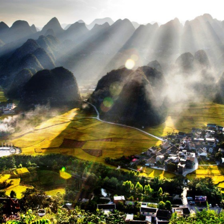 早餐后前往万峰林游玩,‘天下山峰何其多,唯有此处峰成林’悍然成林的喀斯特地貌,环绕着六千多亩的水稻田,其中红点点缀着灰白瓦墙的布衣族部落,堪称绝美,远离城市喧嚣,感受山野般的田园生活。晚上宿兴仁。