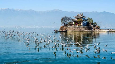 抚仙湖位于云南省玉溪市,湖水晶莹剔透、清澈见底,古人称为“琉璃万顷”。