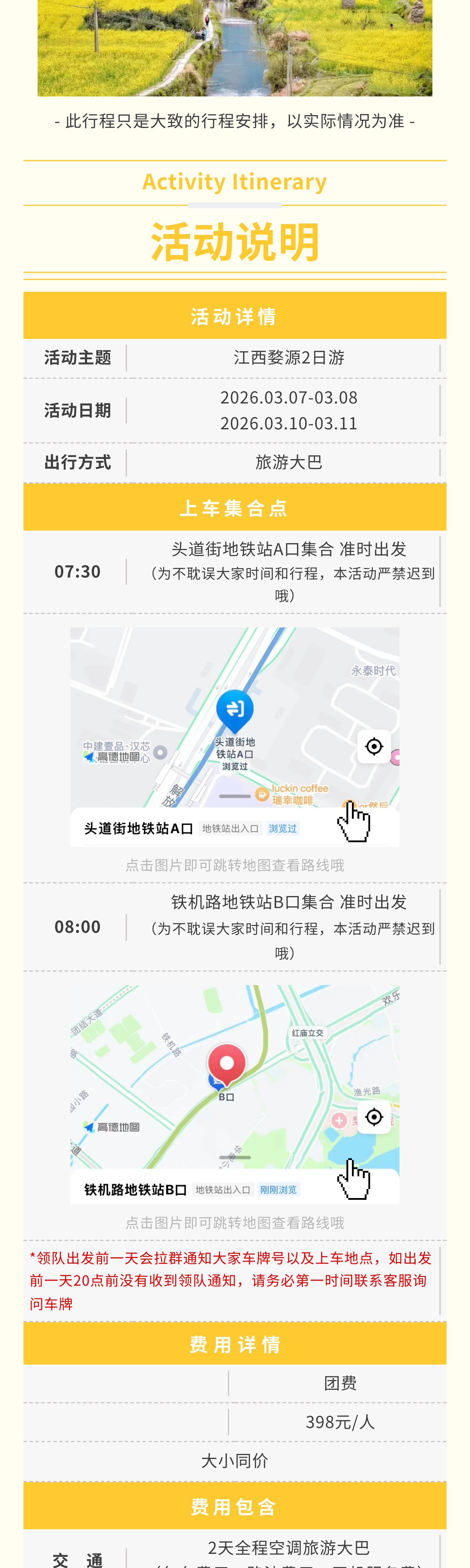 【婺源2日】3月7-8日、3月10-11日庆源古村赏油菜花海,醉享婺源春日风光 [复制链接]