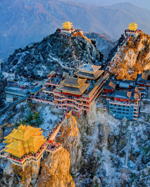 餐后我们前往【老君山】,全程索道上下,把时间留来赏景。这是老子归隐修炼的圣地,也被誉为天下名山,被誉为“天下无双圣境,世界第一仙山”如今更成为了众多影视剧的梦幻取景地。唯有雪天的老君山如同仙境一样。当冬雪降临,为老君山披上了银装,山峦叠嶂,白雪皑皑、玉树琼枝,雪中的松林,银装素裹,;登上老君山,看云海翻涌,大雪覆盖了无数古老的故事和传说;纷纷扬扬的雪花恰似一片片虔诚的心愿;我们着红色斗篷穿梭于林间溪畔和白雪长廊,观景的人亦成了画中的景。
