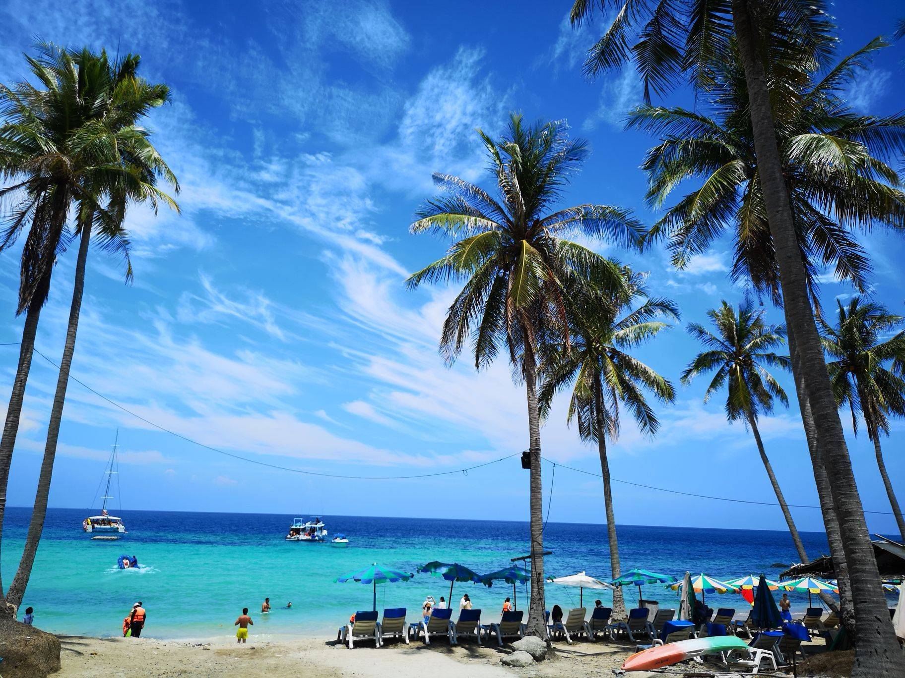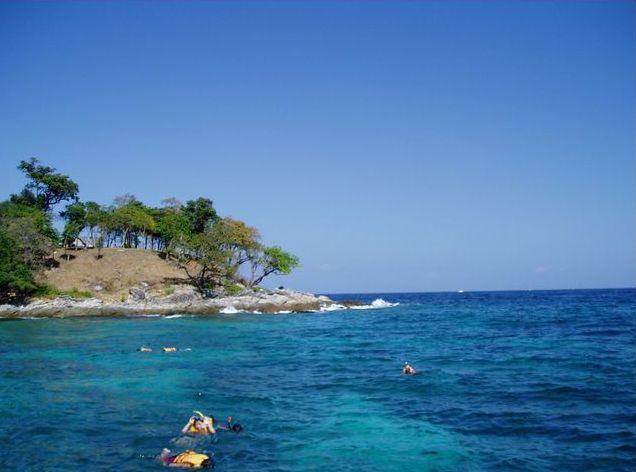 它是欧美人士最爱日光浴的天堂,现在这群热带鱼将热情等待你们的到来。岛上保持着原始生态,无人在岛上居住。是 pp 岛周边海水质量最好的地方。长满了青翠的树木,海水可以看到浅绿深绿深蓝三种不同颜色,沙滩宽阔,洁白细软,沿着海边蜿蜒伸展开来,绵延达数公里。四周被洁白的沙滩和海水围绕,景色美轮美奂!到达岛上你才明白,这个地方绝对是此次普吉岛之行的最美丽的地方。